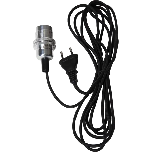 Sladdställ med lamphållare i metall, lamphållaren har två ringar. Svart kabel. E14 sockel. Kombinera upphänget med en snygg ljuskälla. Ett upphäng som ger fina inredningsmöjligheter i huset.