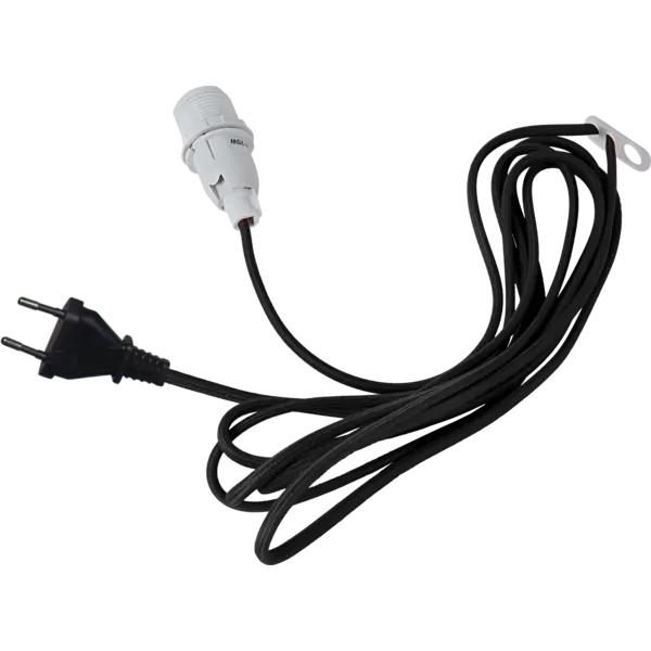 Sladdställ med textilöverdrag i färgen svart. Sladden är 3,5m och kan regleras kortare efter behov. Kombinera upphänget med en snygg ljuskälla.