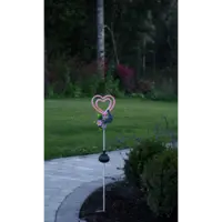 Solcellspinnen Linny Heart är en trädgårdsdekoration i form av ett hjärta och med färgade metalldekorationer nertill. Solcellen blir en vacker dekoration och är lättplacerad i en plantering i trädgården eller på en balkong eller terrass. Hjärtdelen lyser upp med röd neon-rope under natten. Placera solcellsdekorationen där solen kan nå panelen under dagen för att få ultimat laddning till det medföljande batteriet.