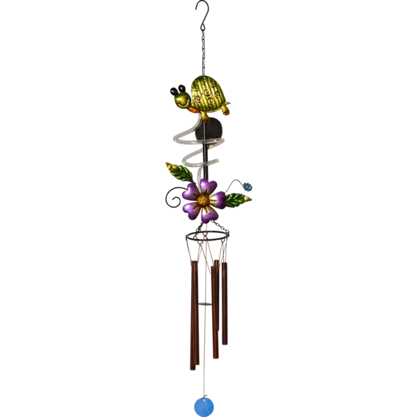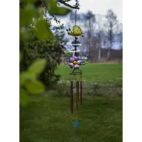Solcelldekorationen Turtle är ett vindspel som klingar lätt i vinden och är vacker att se på med sin multi-färgade dekorationer i form av sköldpadda, blomma och blad. Den blir en vacker dekoration och är lätt att hänga upp med den medföljande kroken, antingen i en trädgård eller på en balkong eller terrass. Den lyser upp med ett varmvitt sken under natten. Placera solcellsdekorationen där solen kan nå panelen under dagen för att få ultimat laddning till det medföljande batteriet.