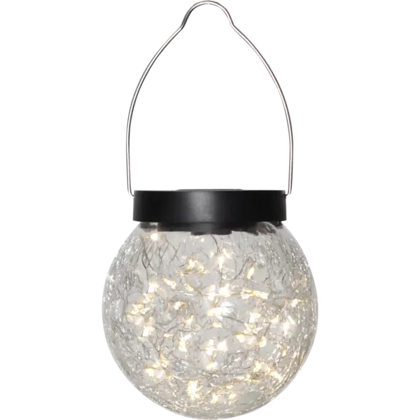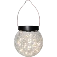 Dekorativ lykta som drivs av solenergi. Lyktan har en dew drop slinga med varmvitt sken. Lyktan är batteridriven och användningsområdet är utomhus.