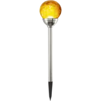 Gångljus med en amber glaskula. Drivs av solenergi och har 1 LED-ljuskälla. Fin solcellspollare att placera i entrén, på stigen och i trädgården. Lyser upp och ger ifrån sig ett fint sken.