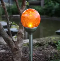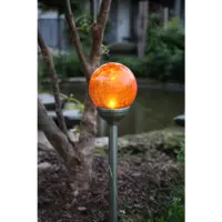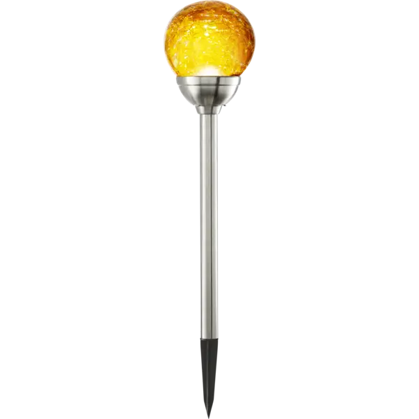 Gångljus med en amber glaskula. Drivs av solenergi och har 1 LED-ljuskälla. Fin dekoration att placera i entrén, på stigen och i trädgården. Lyser upp och ger ifrån sig ett fint sken.
