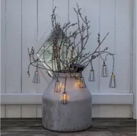 Solcellsslingan Eddy har 10 metalldekorationer i en modern look. Dessa sitter över en varmvit led som lyser upp när mörkret faller. Denna solcellsbelysning har 20 cm mellan ljuspunkterna som ger en 180cm lång slinga. Själva paneldelen sitter med 2 meters kabel från den sista dekorationen, detta gör det enkelt att placera panelen i direkt solljus vilket är nödvändigt för att ladda batteriet som medföljer. Batterislingan placeras i skuggan.