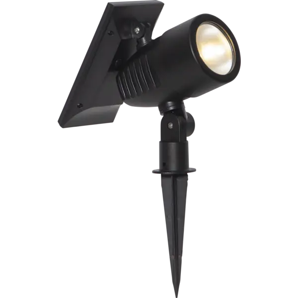 Solcellsdriven strålkastare i plast, ger ett bra sken med 50 lumen i mörkret.