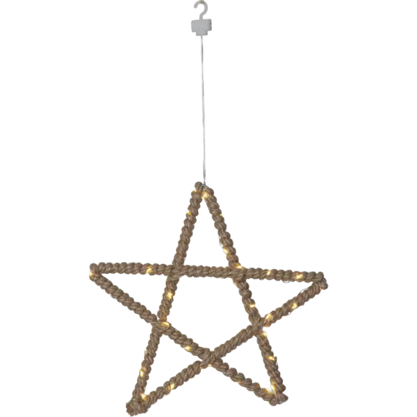Dekorativ stjärna med dew drop slinga och juterep för inomhus burk. Vacker dekoration för alla rum i huset.