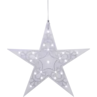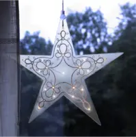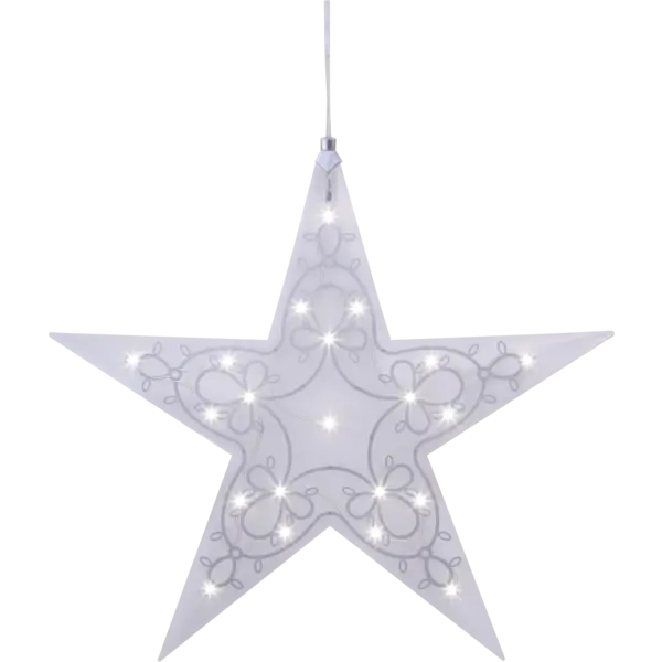 Vacker plexistjärna med dekorativa mönster för inomhusbruk. Stjärnan har 21 LED-ljuskällor som ger ett härligt sken. Fin dekoration att ha i fönstret.