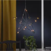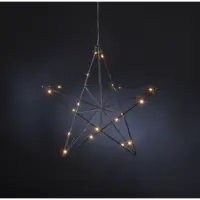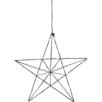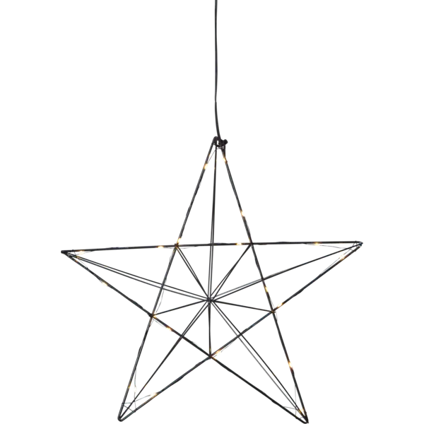 Dekorativ stjärna i svart metall för inomhusbruk. Stjärnan har 20 LED-ljuskällor med varmvitt sken. Fin dekoration att ha i fönstret.