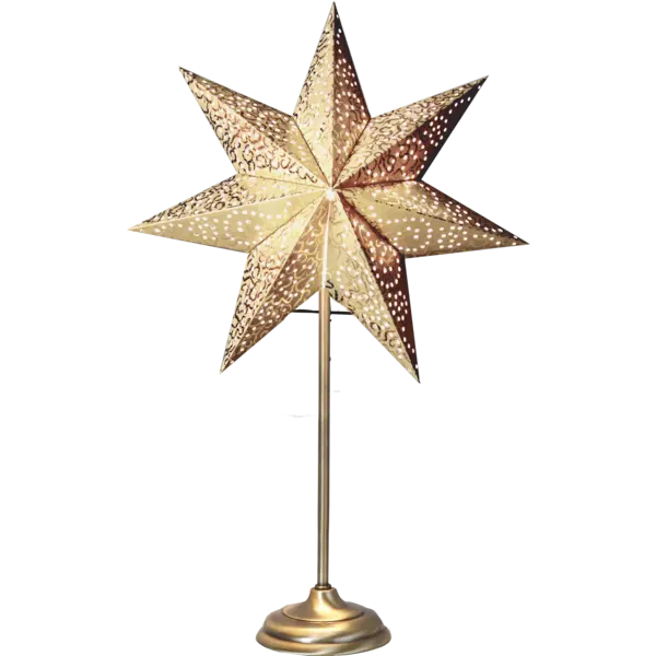Antik mini stjärna på fot i färgen guld. Stjärnan är vackert mönstrad och placeras fint i ett fönster. Sprider mysig julstämning i hemmet.