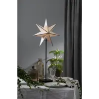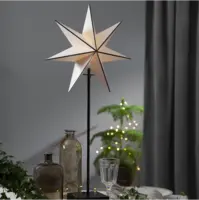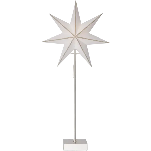 En batteridrive stjärna på fot för inomhusbruk. Pearl färgad bas och pinne, vit stjärna med pearl linjer. 6V lampa ingår, lätt att stänga av och sätta på med en brytare ovan på basen. Lätt placerad eftersom den inte har någon kabel.