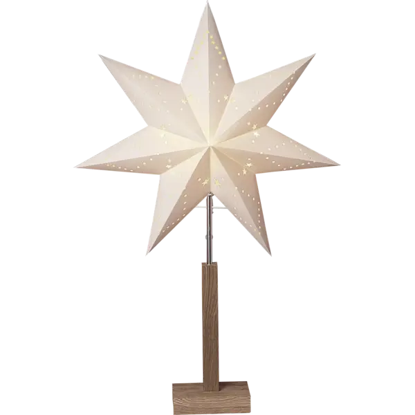 Stjärna på fot i klassisk vit färg. Stjärnan är fint mönstrad och gör sig väldigt bra i ett fönster. Sprider mysig julstämning i huset. Höjden är 70cm.