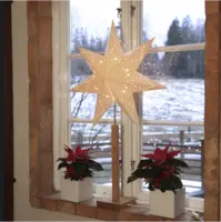 Stjärna på fot i klassisk vit färg. Stjärnan är fint mönstrad och gör sig väldigt bra i ett fönster. Sprider mysig julstämning i huset. Höjden är 100cm.