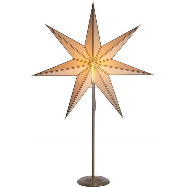 Dekorativ julstjärna på fot i mässing. Gör sig väldigt bra i ett fönster och på en skänk. Stjärnan sprider härlig julstämning i hemmet.