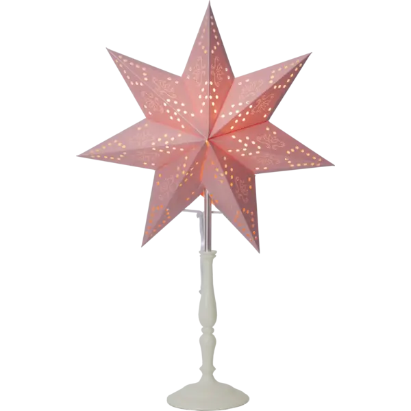 Mini stjärna på fot i en härlig rosa färg. Stjärnan är fint mönstrad och gör sig väldigt bra i ett fönster. Sprider härlig julstämning i huset.