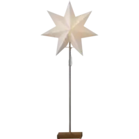 Vit stjärna på fot med ek bas. Elegant juldekoration, lätt att placera och passar utmärkt i ett fönster eller på en skänk. Stjärnan har plats för en ljuskälla. Höjden är 80cm.