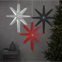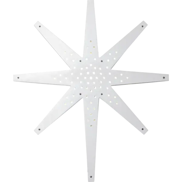 Trästjärna i klassisk vit ?färg. Fin juldekoration att ha hängandes i taket, i ett fönster och mot en vägg. Stjärnan sprider ett vackert sken i rummet och ger en modern julkänsla.