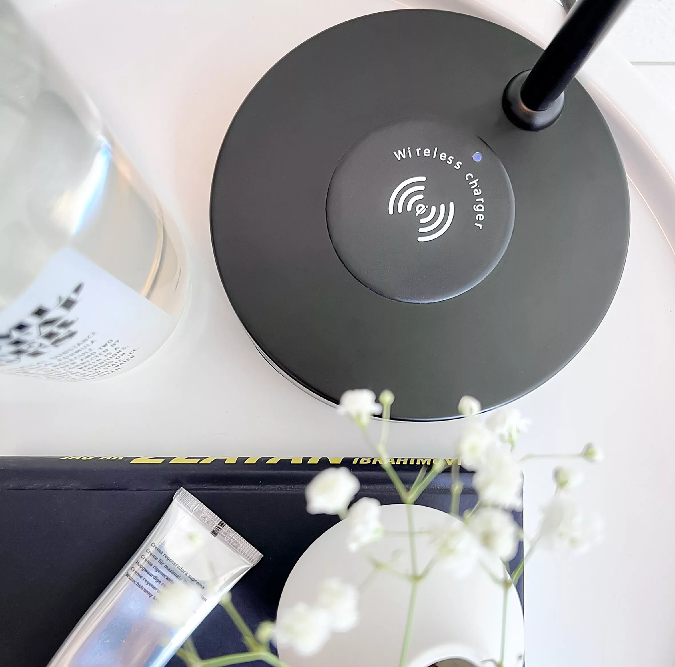 En av de mest praktiska funktionerna hos TABELA bordslampa är den trådlösa laddningsfunktionen. På basen av lampan finns en inbyggd trådlös laddningsplatta som är kompatibel med de flesta smartphones och andra enheter som stöder trådlös laddning. Detta gör det möjligt att enkelt ladda din telefon eller annan enhet genom att bara placera den på lampans bas.