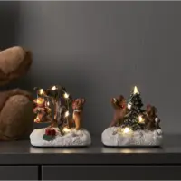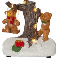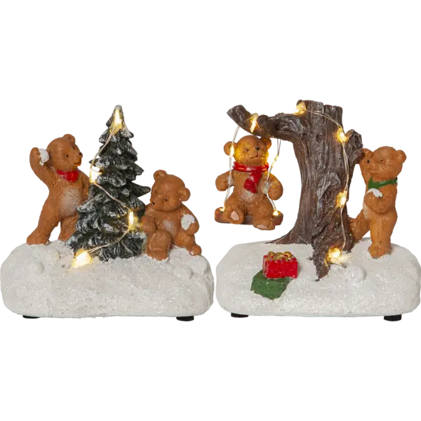 ”I väntan på julen leker och busar Ted med sina vänner i snön. Inne i huset väntar varmchoklad och en härlig brasa.” Detta set som består av två delar är en mysig juldekoration att ha framme hela vintern. Det lyser fint i de små led lamporna när dekorationen är på. Batteridrift och timer funtktion.