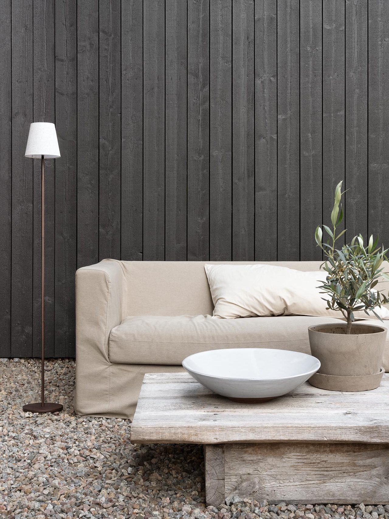 Tyra floor portable är den perfekta golvlampan för att lysa upp vid favoritfåtöljen, eller att skapa lite mysig stämning på uteplatsen eller balkongen. Den textila skärmen ger en jämn och mjuk ljusspridning. Tack vare att den är lätt och sladdlös kan du enkelt ta den med dig dit du vill, eller där du saknar eluttag. Lampan har inbyggd LED-ljuskälla med varmvitt ljus, och dold touchknapp med 3-stegsdimmer på undersidan av skärmen. Laddas enkelt med medföljande USB-C sladd.Höjd cm 119 Diameter cm 17 Diameter bas cm 17 Färg Kaffe Finish Matt Material Metal/fabric