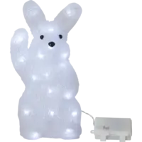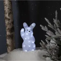 Dekorationsfigur i form av en kanin som står upp och håller upp ena tassen för att säga hej. Går bra att använda både inom- och utomhus. Härlig dekoration att ha i trädgården, barnrummet eller varför inte splacera den vid ytterdörren. Kanien har 30 små LED-ljuskällor som ger ett vackert sken. Drivs av bateri med timer funktion.