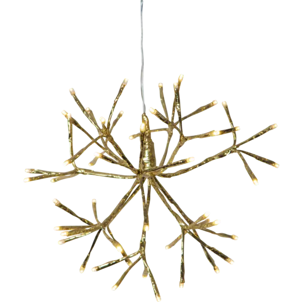 Vacker guldfärgad hängande dekoration för utomhusbruk med små LED-lampor som ger ett gnistrande sken. Underbar dekoration att ha framme till vardags och fest.
