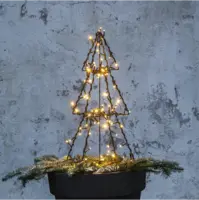 Vacker utomhusdekoration för din trädgård. Lättplacerad i kruka eller på marken. 10 cm långa markpinnar i nederkant av granen som skall tryckas ner i marken.