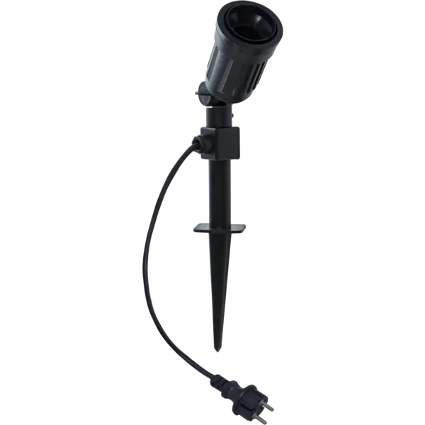 Markspjut för utomhusbruk. Ljuskälla PAR38 med E27-sockel passar till. Spjutet har en 5m gummikabel och används med fördel för att lysa upp träd och buskar. Ljuskälla säljs separat.