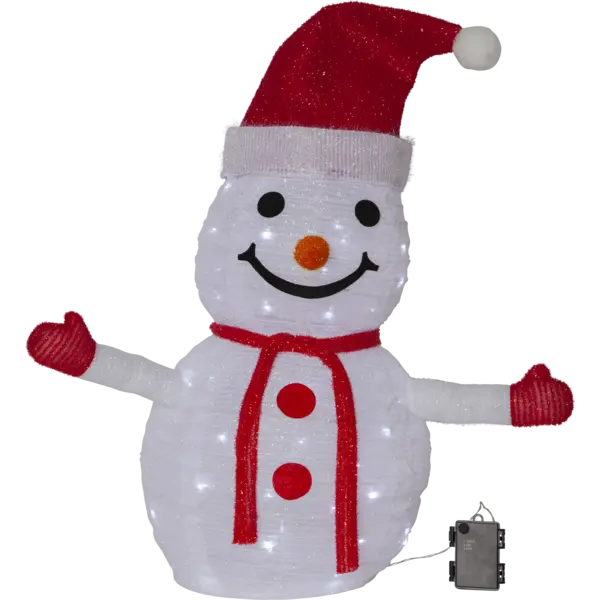 Rolig juldekoration som passar lika bra inne som ute. Vid användning utomhus, se till att placera produkten på ett skyddat ställe, tex under tak, för att bevara tygets skick. Utomhus batteridosa med timerfunktion. Platt förpacking för enkel förvaring