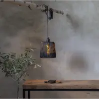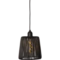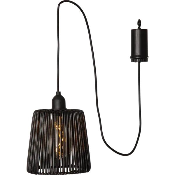 Elegant lampskärm av svart konstrotting i PEmaterial för både inom- och utomhusbruk. Klar lampa med spiralfilament LED. Batteridriven med timer funktion