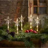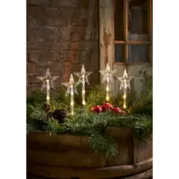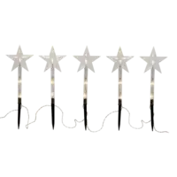 Vacker utomhusdekoration för din trädgård, set om fem stjärnor på markspett. Lättplacerad i kruka eller på marken. Skapar ett vackert ljussken under den mörka årstiden. Batteridriven med timerfunktion.