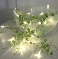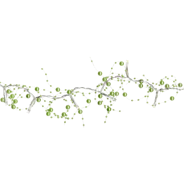 Fin dekorationsslinga med 20 LED-ljuskällor med gröna pärlor. Kan användas vid diverse dekorationer, vid tex dukningar, blomsterarrangemang, i fönster, på väggen osv. Slingan är batteridriven och har en smidig timerfunktion.