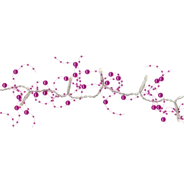 Fin dekorationsslinga med 20 LED-ljuskällor med cerise pärlor. Kan användas vid diverse dekorationer, vid tex dukningar, blomsterarrangemang, i fönster, på väggen osv. Slingan är batteridriven och har en smidig timerfunktion.