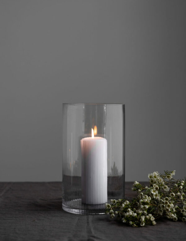 RAMSJÖ stor klarglas randig vas/ljuslykta