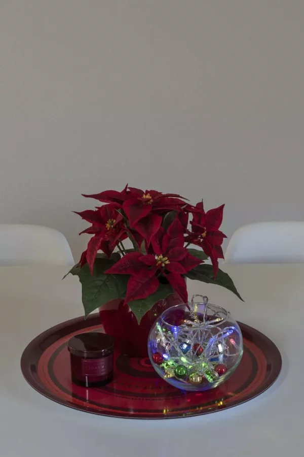 En traditionell och vacker elljusstake i trä med fyra röda ljus som skapar en mysig stämning under julen. Tillverkad av Gnosjö Konstsmide för hög kvalitet och hållbarhet.