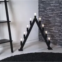 Svart träljusstake med runda ljushållare. Fin adventsljusstake att dekorera med till jul. Ljusstaken har 11 ljuskällor.